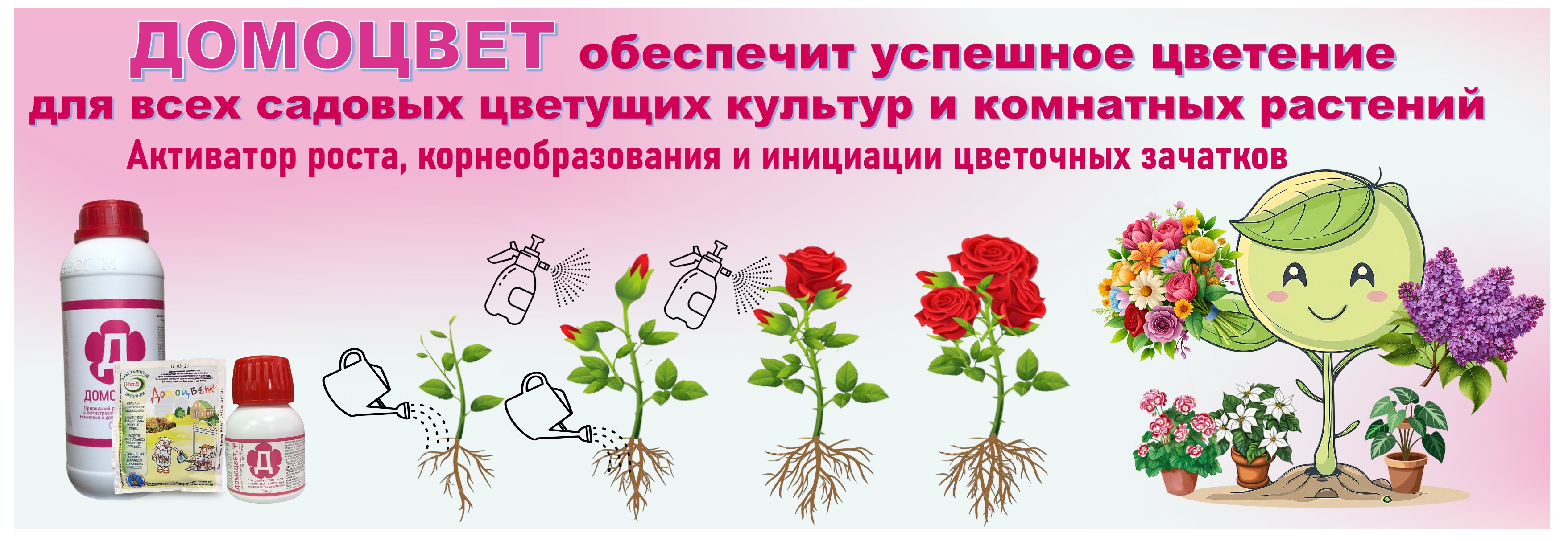 Домоцвет (0,05г/л гидроксикоричных кислот) - регулятор роста повышающий декоративность однолетних, многолетних, комнатных цветочных культур и крупных многолетних цветочно-декоративных кустарников ( сирень, жасмин, рододендрон, гортензия, миндаль, лапчатка и др.) открытого и защищенного грунта.